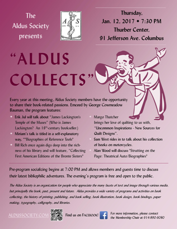 [SOA] Thurs., Jan. 12 meeting: Aldus Society (Book-lovers in central OH)