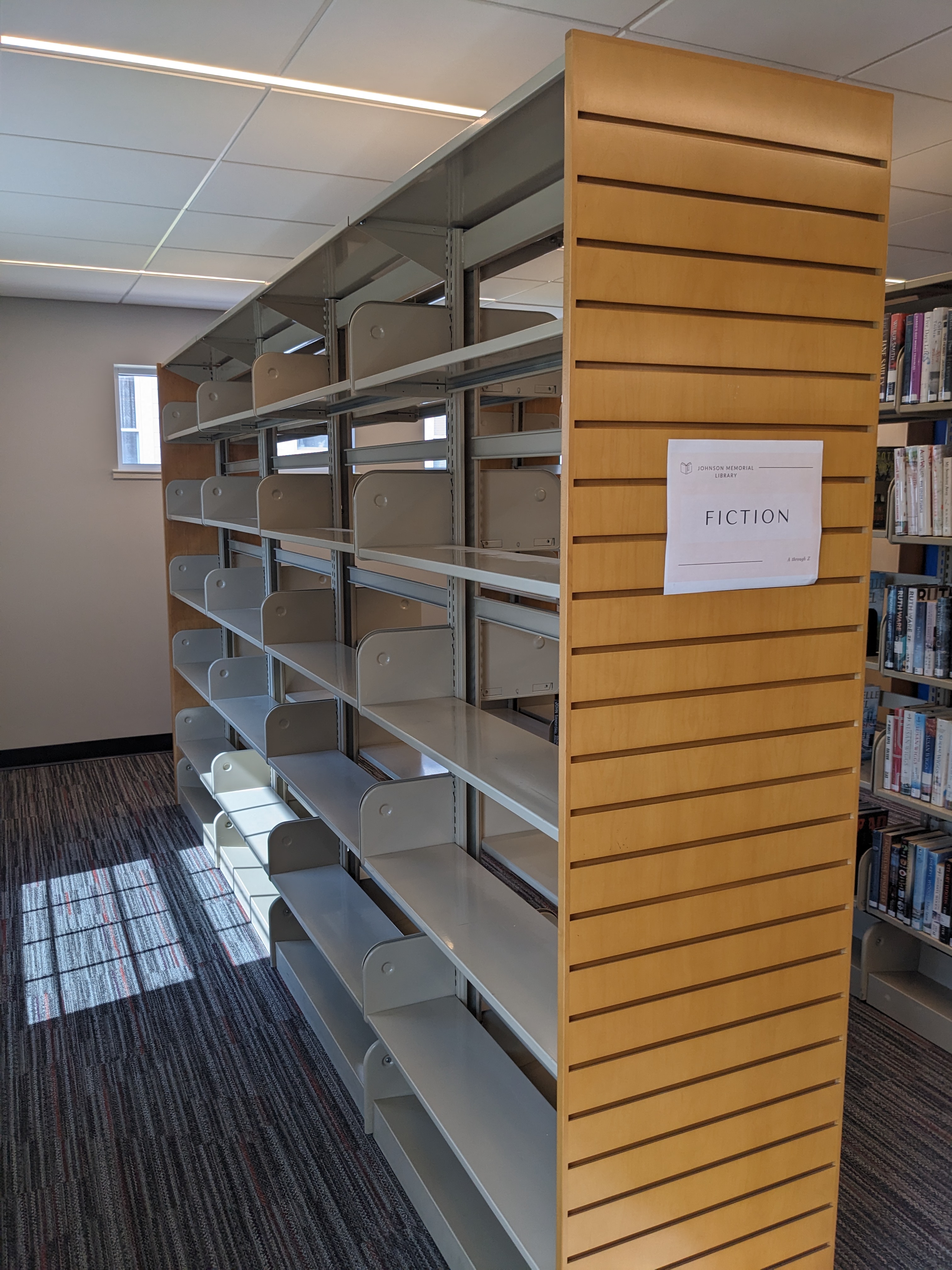 > We have free metal shelving and wood end pieces available for pickup at